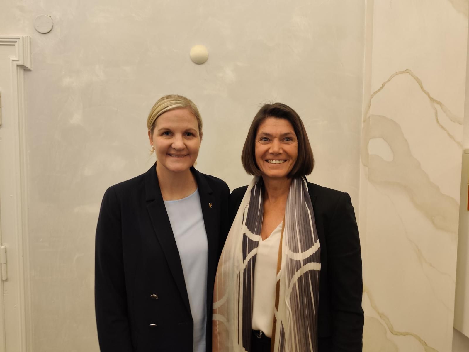Regula Meier, à droite, aux côtés de la présidente du CIO Kirsty Coventry.