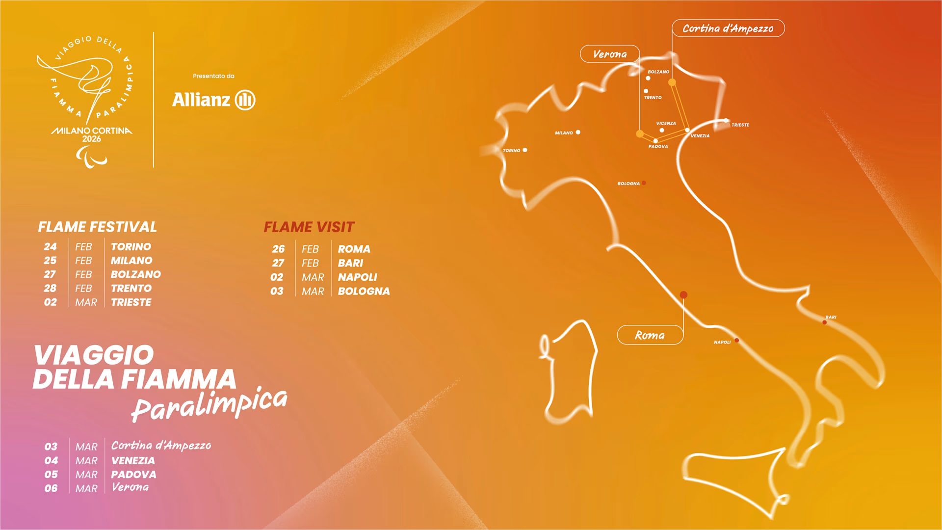 « Chaque étape sera l’occasion de célébrer le sport comme une force capable d’unir les communautés, de promouvoir l’inclusion et d’envisager l’avenir avec confiance et responsabilité, en portant les valeurs du Mouvement paralympique en Italie, se félicite Giovanni Malagò , président du COJOP. C’est un parcours qui s’adresse à tout le pays, impliquant les régions, les institutions et les citoyens dans une grande solidarité. La flamme deviendra le symbole d’une Italie qui croit au mérite, au courage et à la capacité de dépasser toutes les limites, rendant hommage aux athlètes qui incarnent ces valeurs extraordinaires au quotidien. »