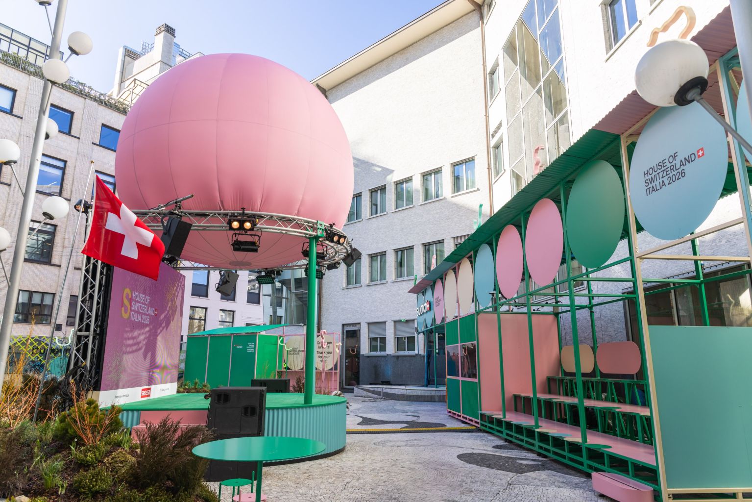 Un petit bout de Suisse, en plein cœur de Milan. La Maison suisse s’est installée au Centro Svizzero, tout près de la Porta Venezia, pour les Jeux olympiques d’hiver. La cour a été aménagée pour y installer un écran géant, des bancs, un food truck, mais aussi un jardin alpin, histoire d’apporter une touche de nature dans cet environnement urbain, tout en mettant le patrimoine naturel du pays en valeur. Ce projet, établi en partenariat avec Swiss Olympic, a deux objectifs. « Une mission sportive, pour les athlètes et les fans, et le nation branding, afin de communiquer et promouvoir la Suisse », confie Philippe Ittig, directeur de la Maison.