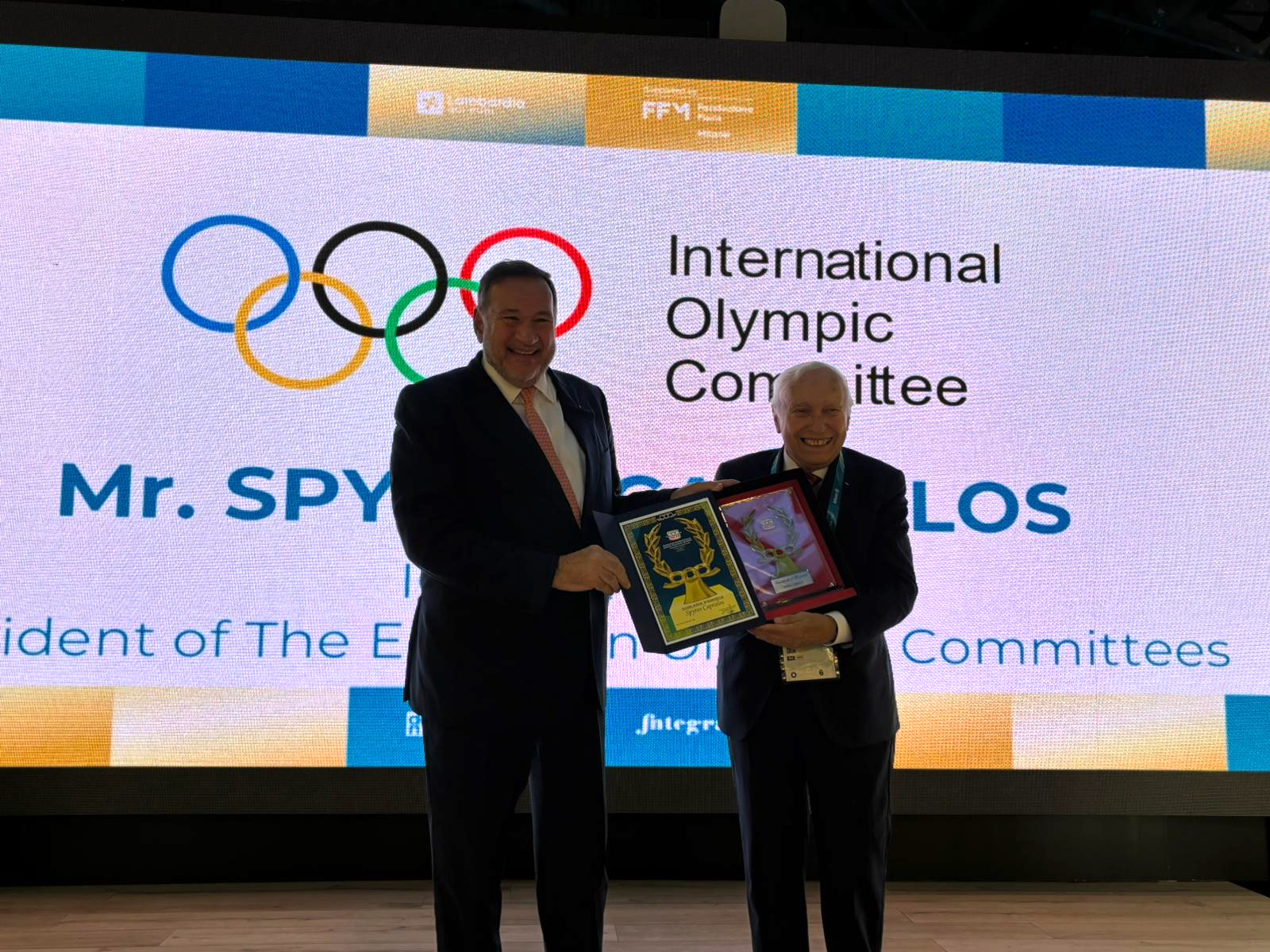 La Fédération Internationale Cinéma Télévision Sportifs (FICTS) a remis la Guirlande d’honneur à Spyros Capralos lors d’une cérémonie à Milan. Une récompense pour son action en faveur de la promotion de la culture et de l’éthique en tant que président des Comités olympiques européens.