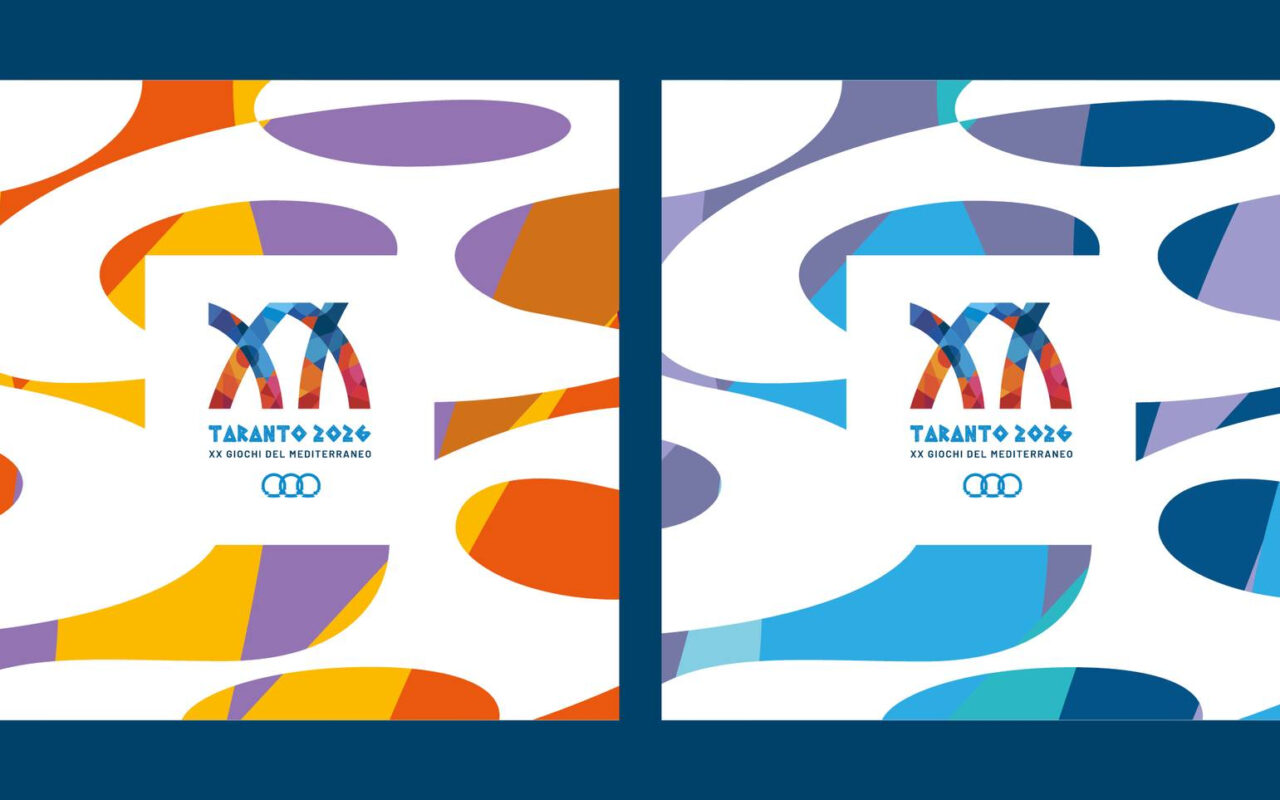 Le comité d’organisation a misé sur « des formes fluides, dynamiques et organiques qui s’éloignent et se rapprochent dans un mouvement harmonieux et continu ». Le visuel évoque le flux de l’eau, et « la mer devient ainsi une métaphore et un espace de connexion, capable d’unir peuples, cultures et générations le long des rives de la Méditerranée ». Les couleurs utilisées sont celles de Taranto : « Le bleu et le rouge de la ville, l’azur de la mer et les tons chauds du soleil méditerranéen. Le blanc devient un espace ouvert d’échange — une non-couleur qui accueille et unit. »